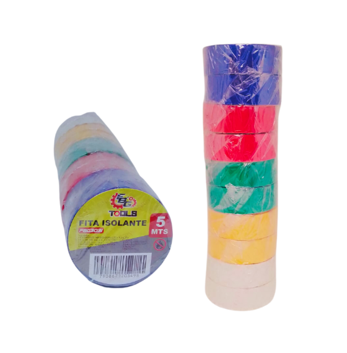 Descrição: Fita Isolante colorida indicada para uso geral. Pacote com 10 unidades de 5m.