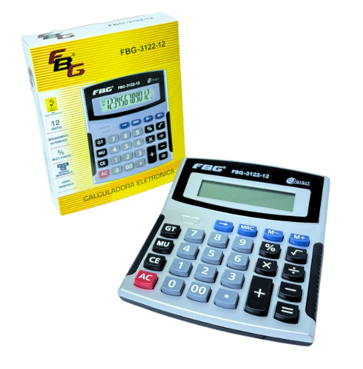 Calculadora 12 dig FBG foi projetado para oferecer praticidade, qualidade e durabilidade. Fabricado com materiais de alta qualidade