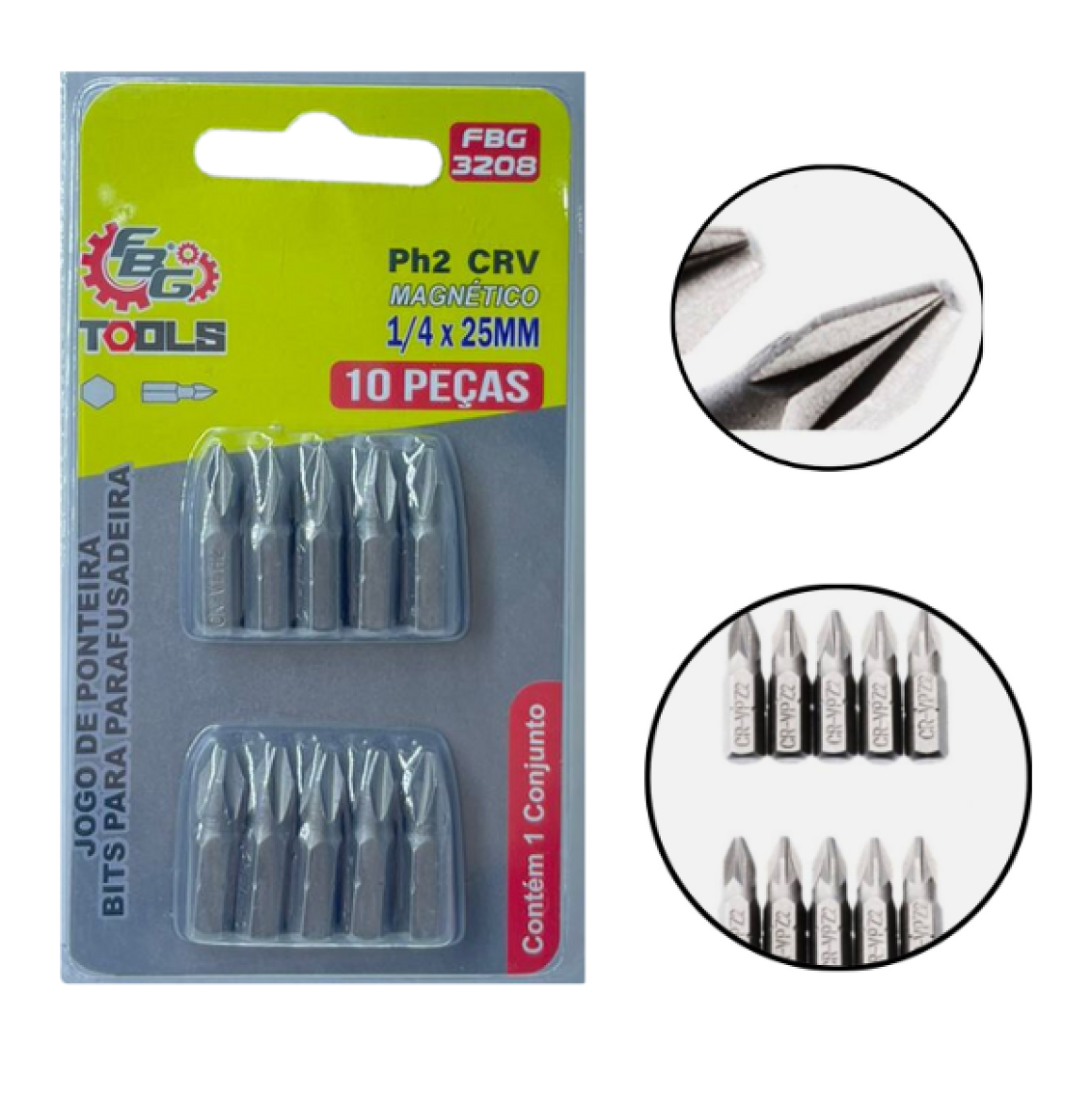 PONTEIRAS BITS PARA PARAFUSADEIRA 10 PEÇAS - MODELO FBG 3208