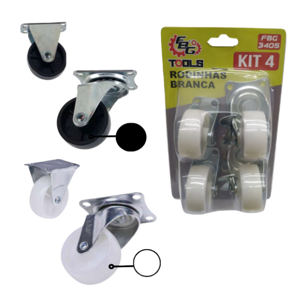 Kit 4 rodinhas FBG foi projetado para oferecer praticidade, qualidade e durabilidade. Fabricado com materiais de alta qualidade