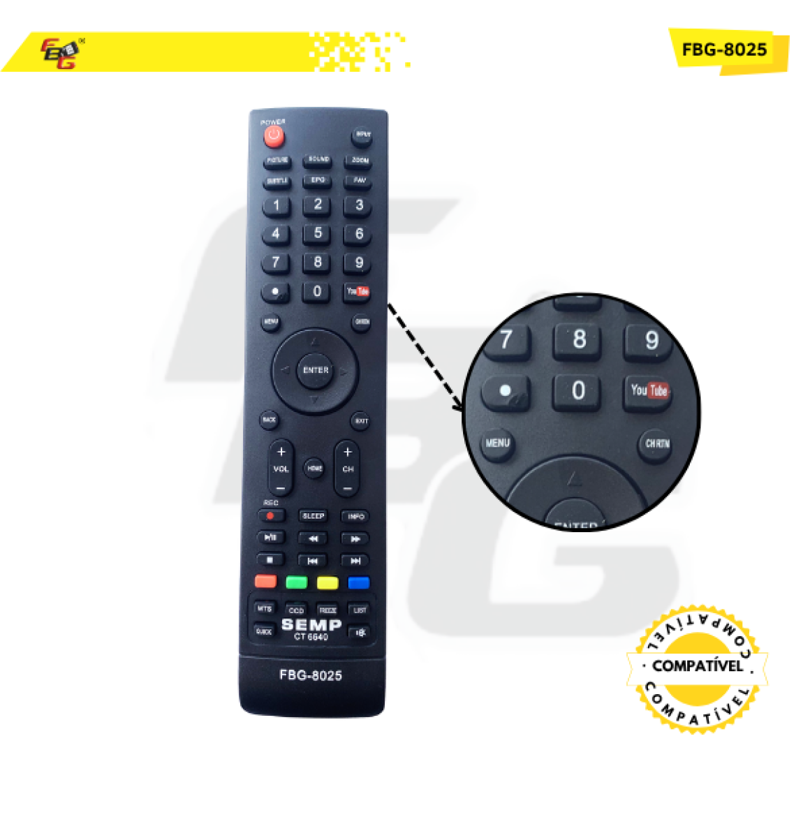 O Controle Remoto da FBG foi projetado para oferecer praticidade, qualidade e durabilidade. Fabricado com materiais de alta qualidade, ele possui teclas macias, plástico resistente e um LED transmissor com excelente tempo de resposta, garantindo uma experiência de uso rápida e eficiente.