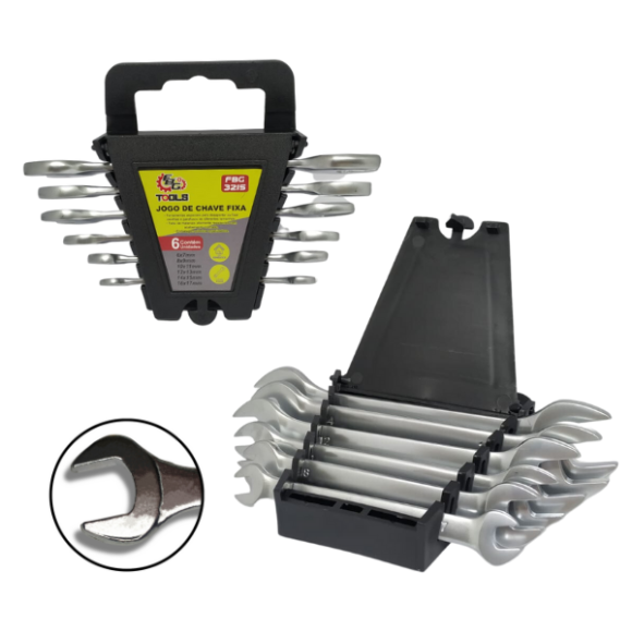 Descrição: Jogo de chave fixa com 6 peças ideal para desapertar ou fixar cavilhas e parafusos de diferentes tamanhos.