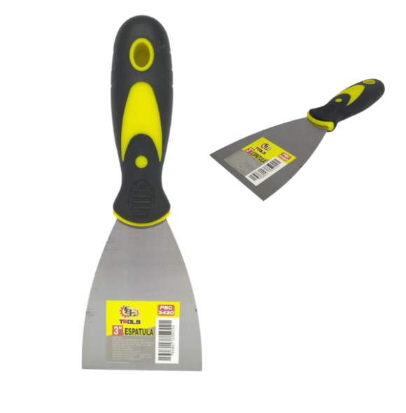 Descrição: Espatula tamanho 3. Indicada para aplicação de massa corrida, argamassa, textura, gesso, entre outros. Utilizada também para raspagem.