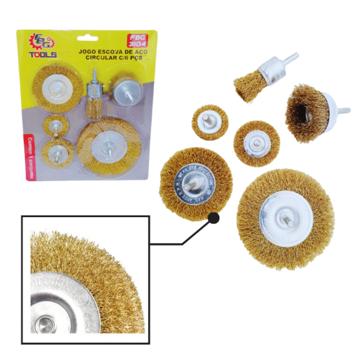 JOGO ESCOVA DE AÇO COM 6 PEÇAS - MODELO FBG 3104