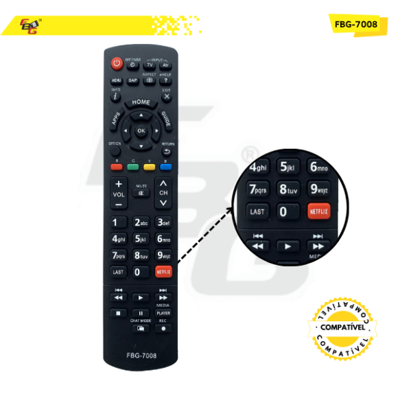 Controle Remoto compatível com TV Panasonic - Modelo FBG-7008