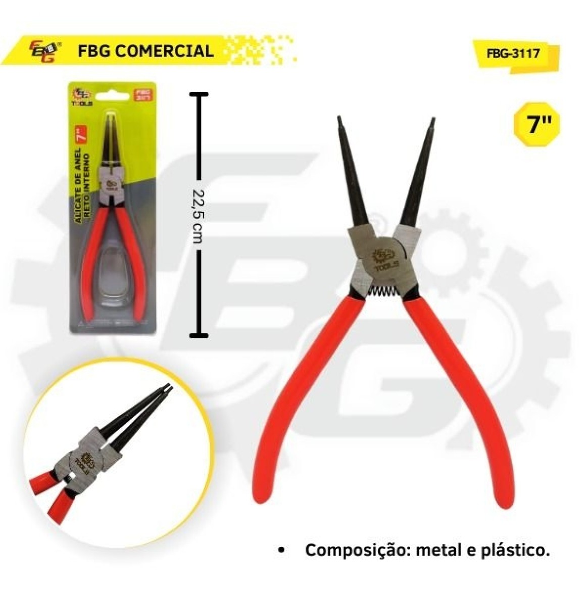 Alicate de anel reto interno FBG foi projetado para oferecer praticidade, qualidade e durabilidade. Fabricado com materiais de alta qualidade