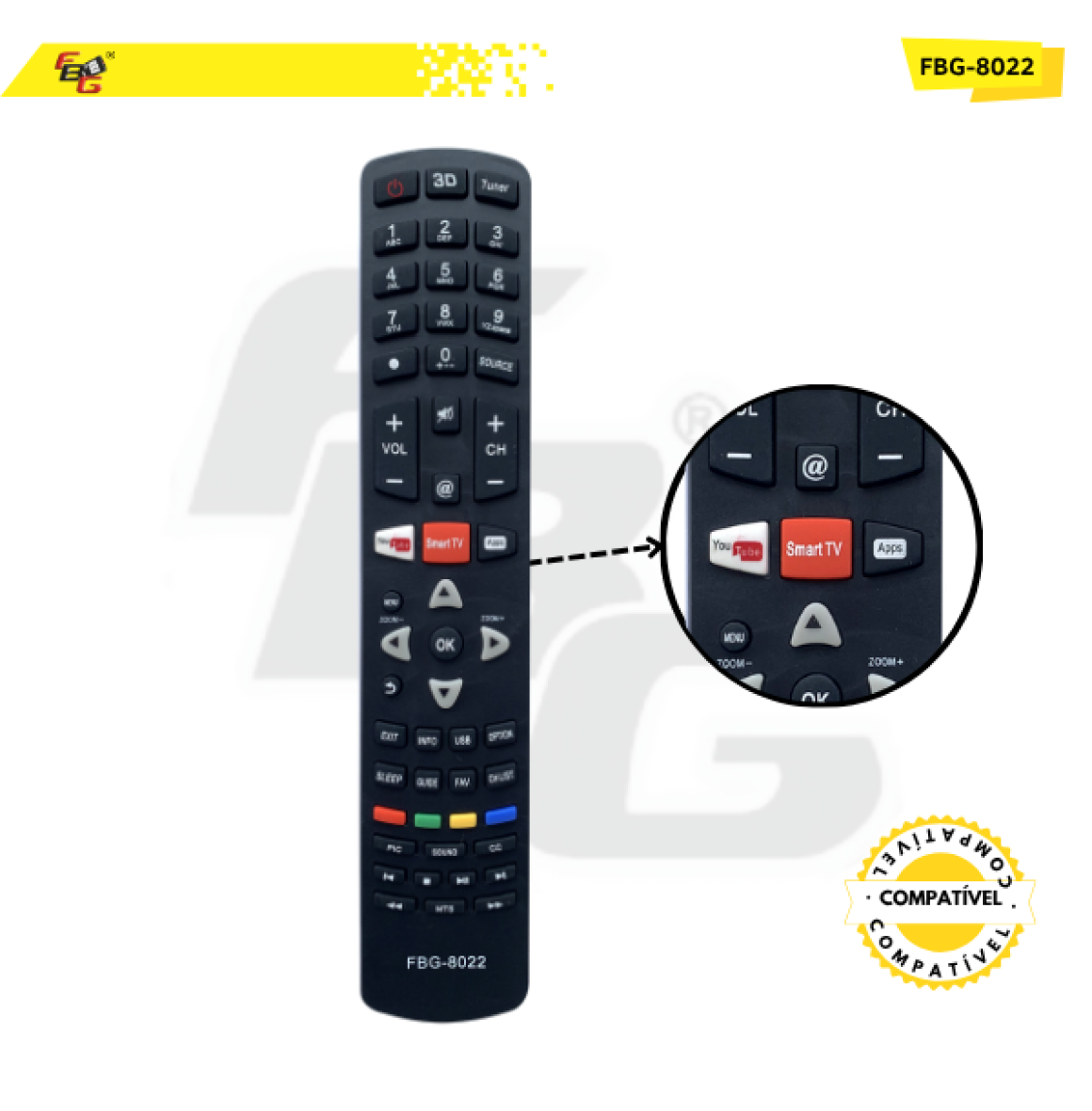 O Controle Remoto da FBG da foi projetado para oferecer praticidade, qualidade e durabilidade. Fabricado com materiais de alta qualidade, ele possui teclas macias, plástico resistente e um LED transmissor com excelente tempo de resposta, garantindo uma experiência de uso rápida e eficiente.
