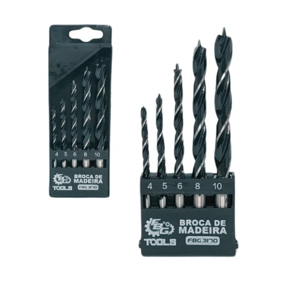 Descrição: Jogo de brocas para madeira com 5 peças. Ideal para perfuração precisa em madeira.
