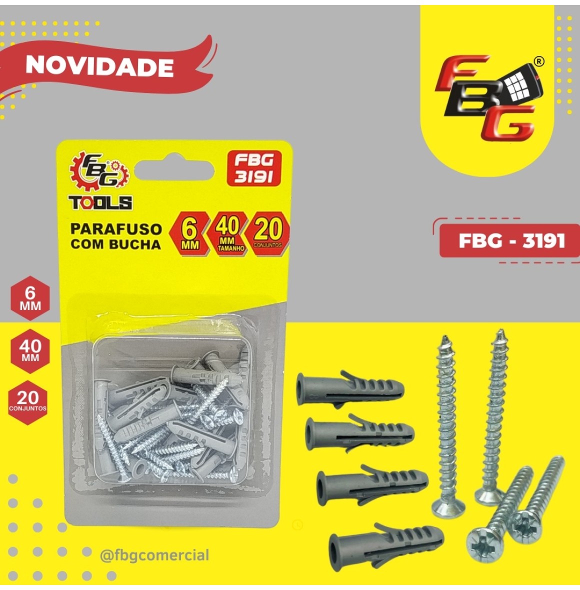 Jogo de parafuso com bucha FBG foi projetado para oferecer praticidade, qualidade e durabilidade. Fabricado com materiais de alta qualidade
