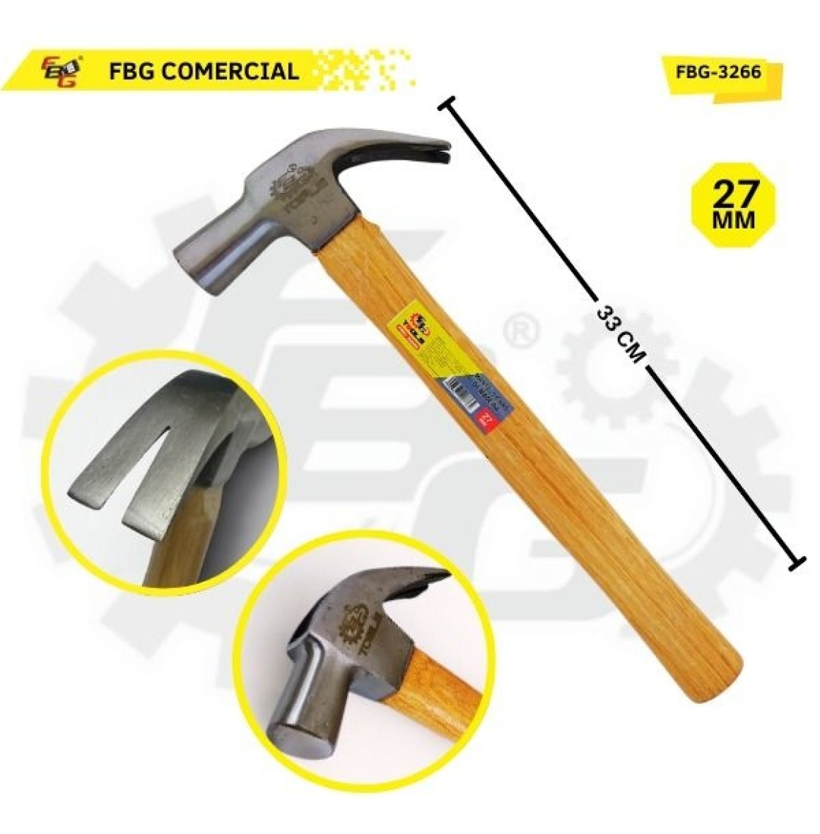 Martelo cabo de madeira FBG foi projetado para oferecer praticidade, qualidade e durabilidade. Fabricado com materiais de alta qualidade