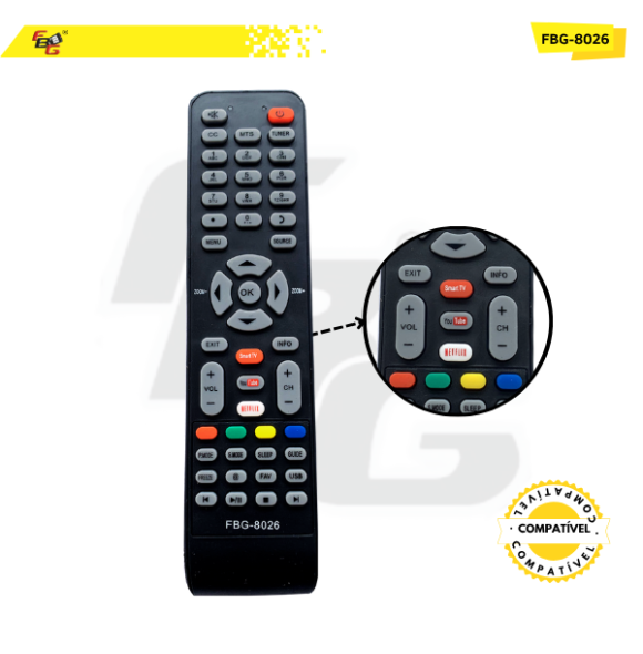 O Controle Remoto da FBG foi projetado para oferecer praticidade, qualidade e durabilidade. Fabricado com materiais de alta qualidade, ele possui teclas macias, plástico resistente e um LED transmissor com excelente tempo de resposta, garantindo uma experiência de uso rápida e eficiente.