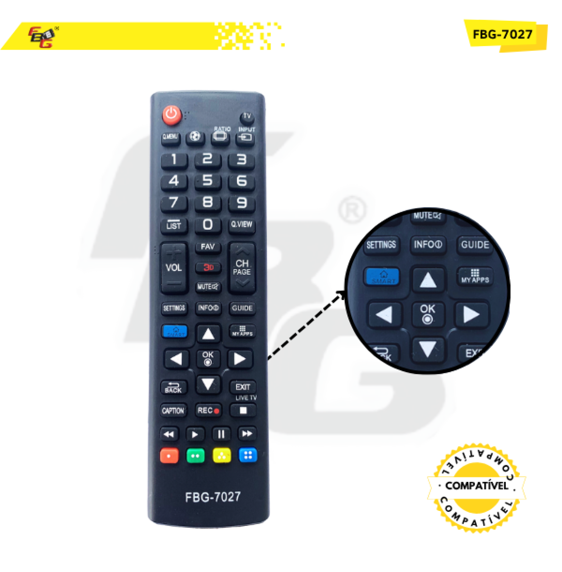 Controle Remoto compatível com TV LG Smart - Modelo FBG-7027