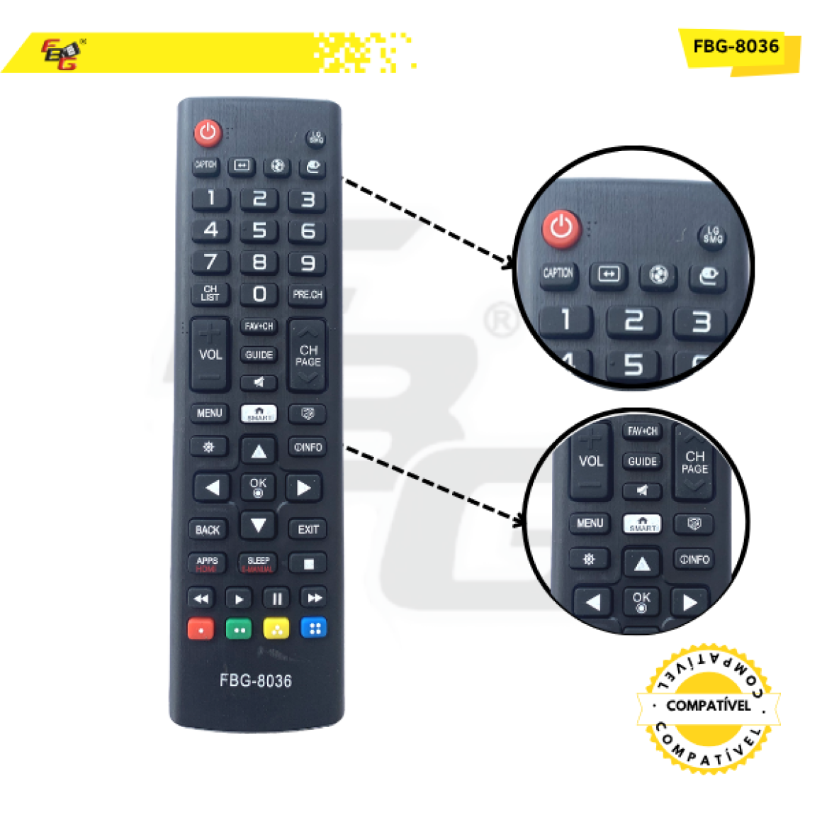 Controle Remoto Smart Compatível C/ LG Samsung Link - FBG- 8036
