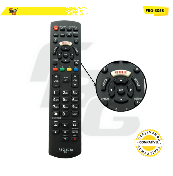 Controle Smart Compatível C/ Panasonic C/ Netflix MODELO-8058