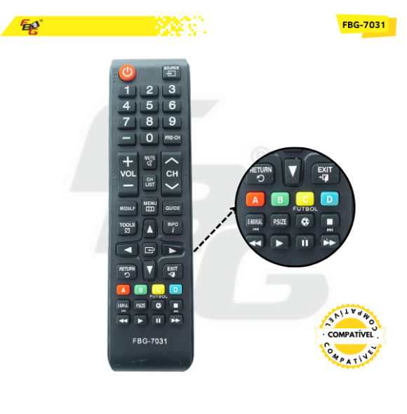 Controle Remoto compatível com TV Samsung LCD/LED - Modelo FBG-7031