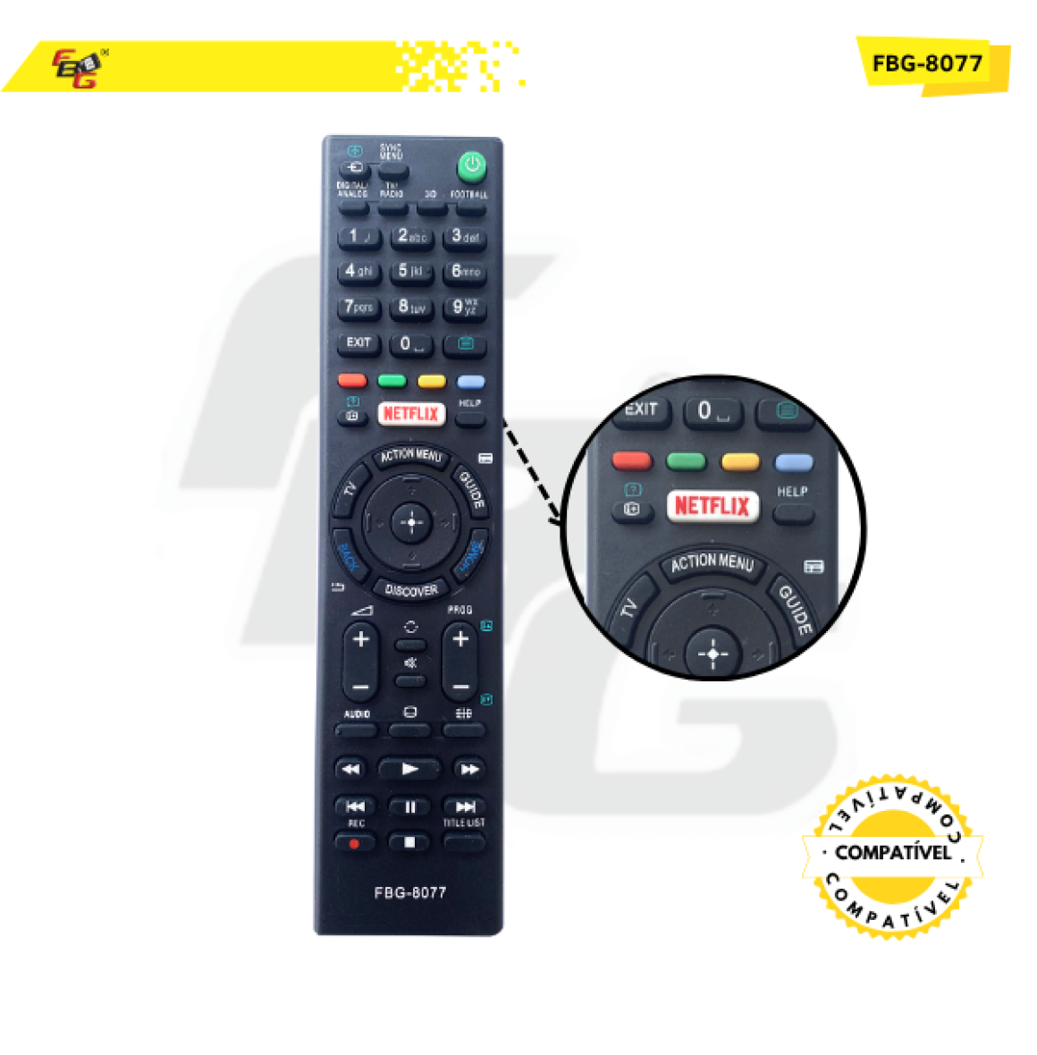 O Controle Remoto da FBG foi projetado para oferecer praticidade, qualidade e durabilidade. Fabricado com materiais de alta qualidade, ele possui teclas macias, plástico resistente e um LED transmissor com excelente tempo de resposta, garantindo uma experiência de uso rápida e eficiente.