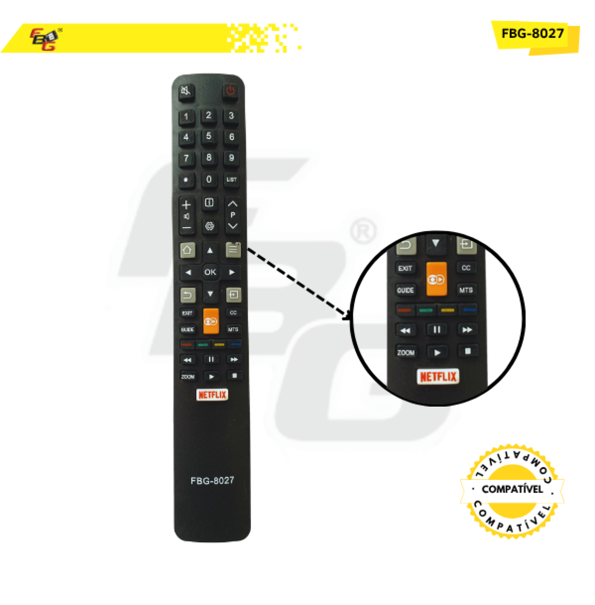 O Controle Remoto da FBG foi projetado para oferecer praticidade, qualidade e durabilidade. Fabricado com materiais de alta qualidade, ele possui teclas macias, plástico resistente e um LED transmissor com excelente tempo de resposta, garantindo uma experiência de uso rápida e eficiente.