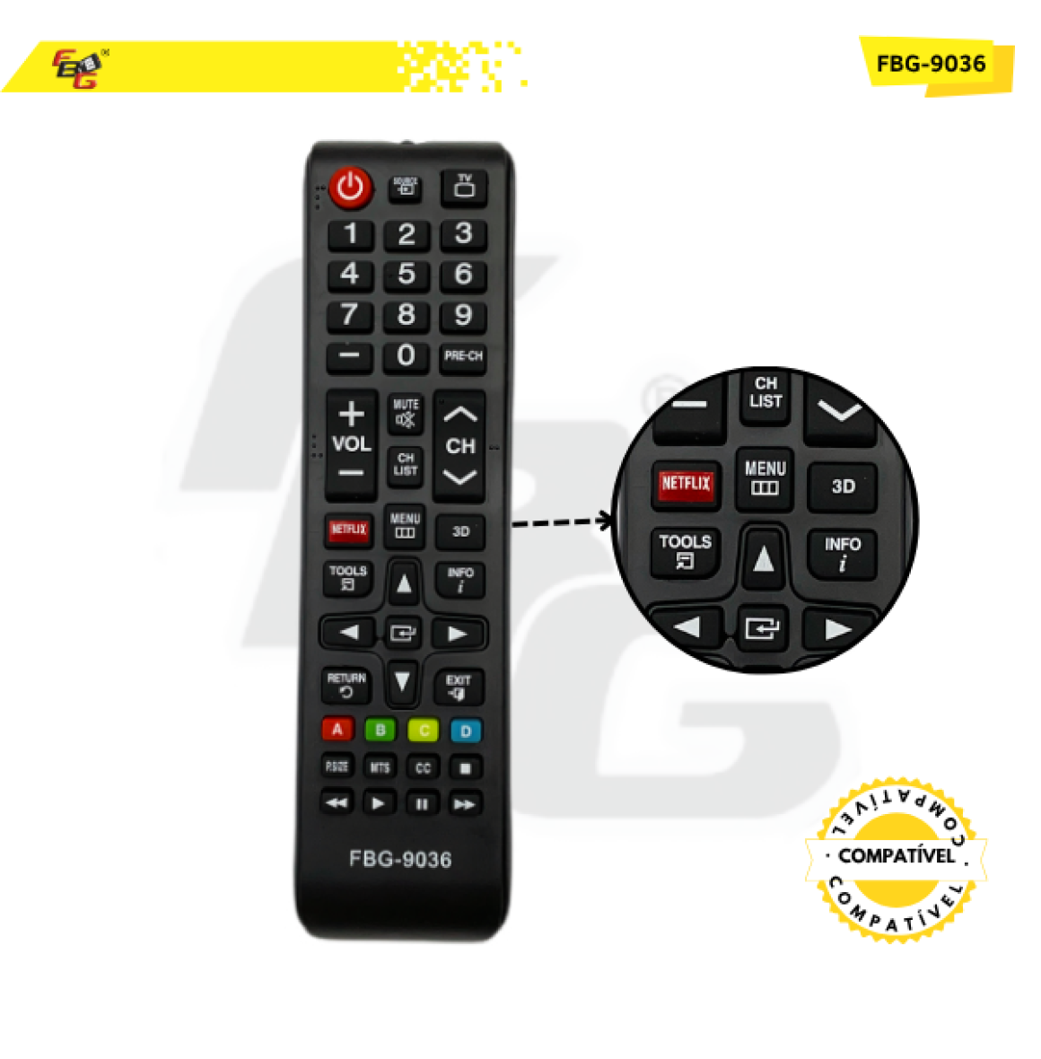 Controle Remoto Smart Compatível C/ Netflix -Modelo FBG- 9036