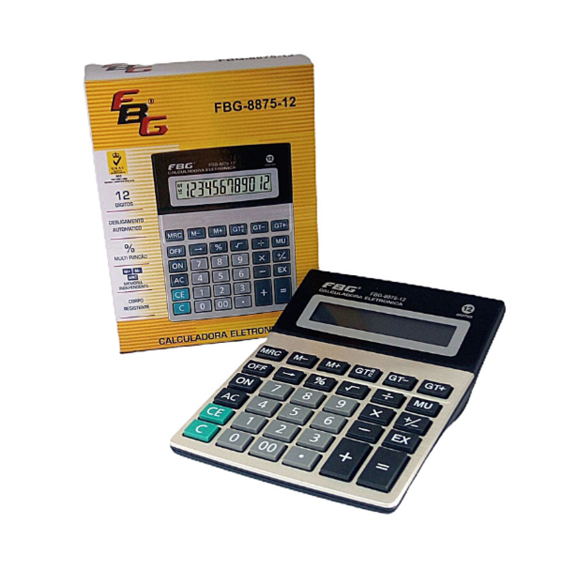 Calculadora 12 dig FBG foi projetado para oferecer praticidade, qualidade e durabilidade. Fabricado com materiais de alta qualidade