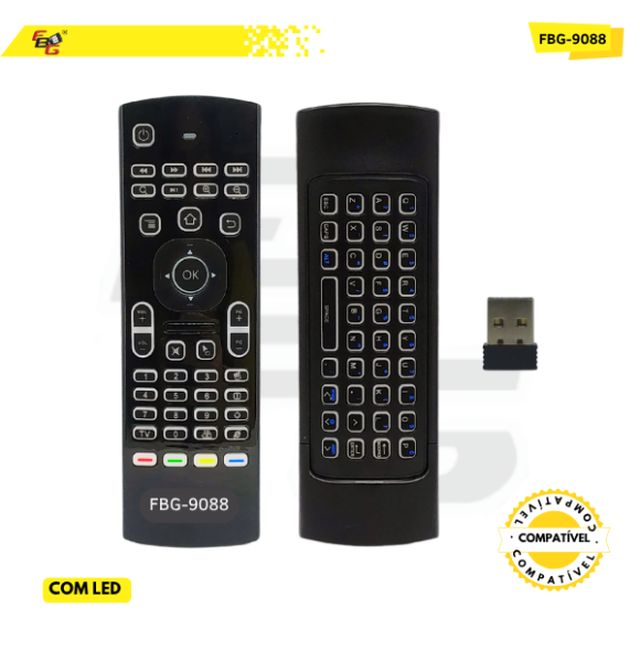 - 9088 CONTROLE COMPATÍVEL C/ AIR MOUSE C/ LUZ, MINI TECLADO E MOUSE UNIVERSAL SMART TV / PC / TV BOX / PLAYSTATION / XBOX