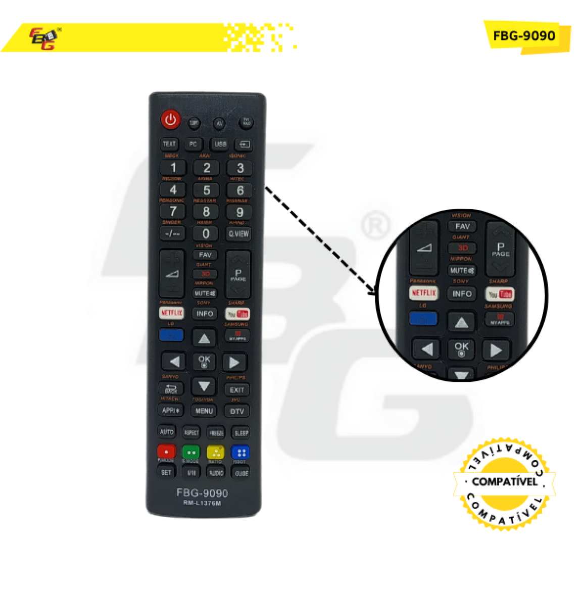 Controle Remoto Compatível C/ Universal Smart - Modelo FBG-9090