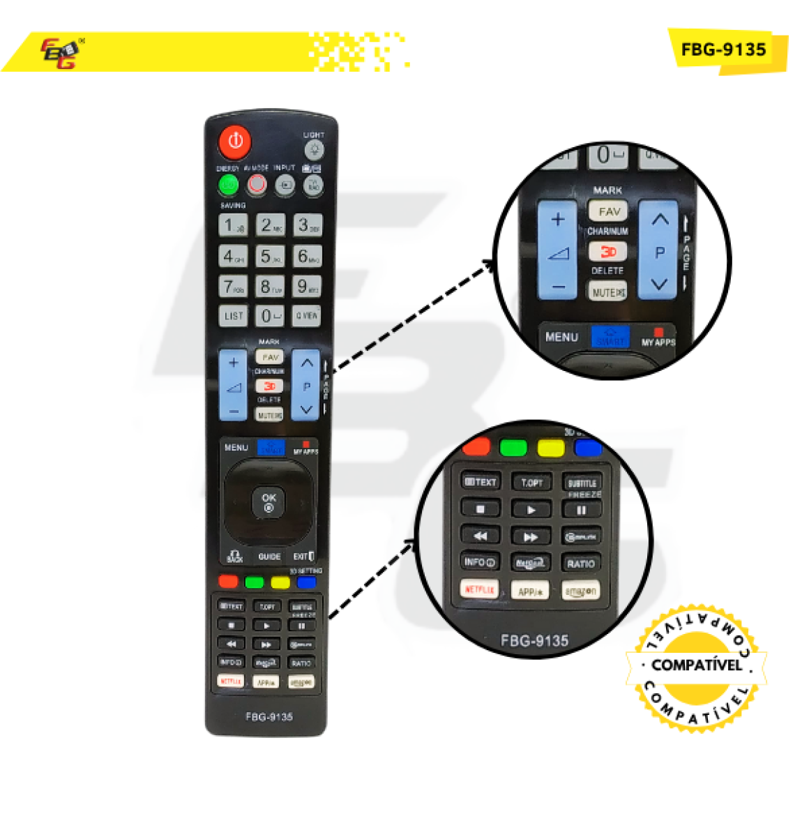 Controle Remoto Smart Compatível C/ Lg Modelo FBG-9135