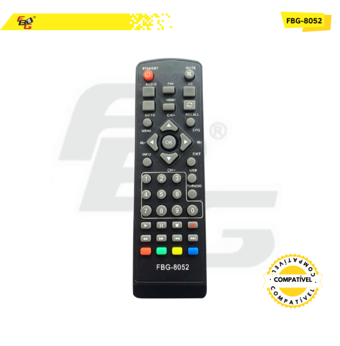 O Controle Remoto da FBG foi projetado para oferecer praticidade, qualidade e durabilidade. Fabricado com materiais de alta qualidade, ele possui teclas macias, plástico resistente e um LED transmissor com excelente tempo de resposta, garantindo uma experiência de uso rápida e eficiente.