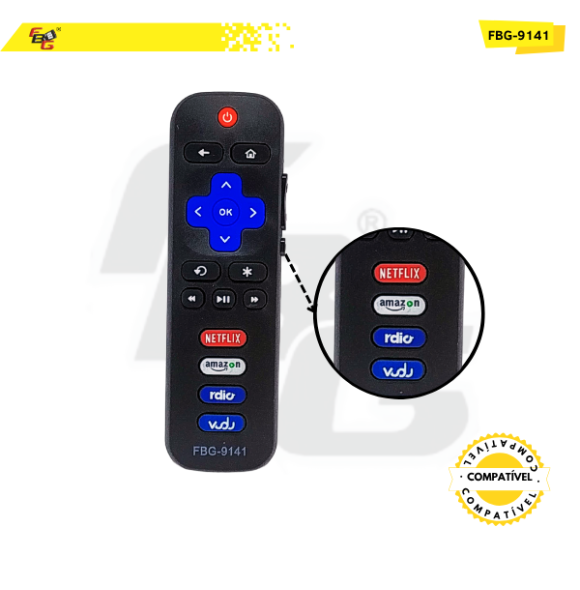 9141 CONTROLE SMART COMPATÍVEL C/ TCL ROKU (BOTÃO LATERAL FUNCIONA)