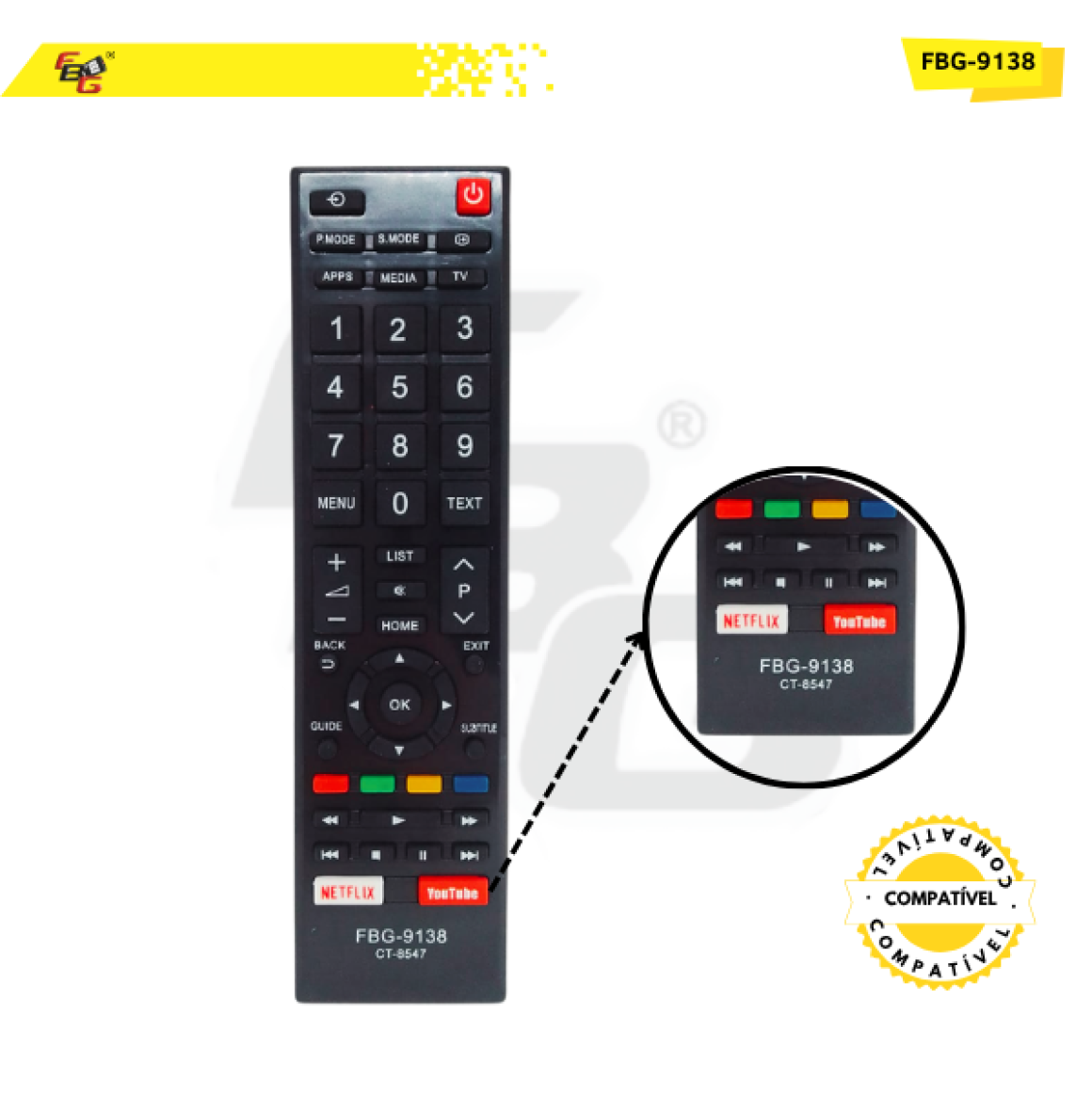 Controle Remoto Compatível com Smart Toshiba - Modelo FBG- 9138